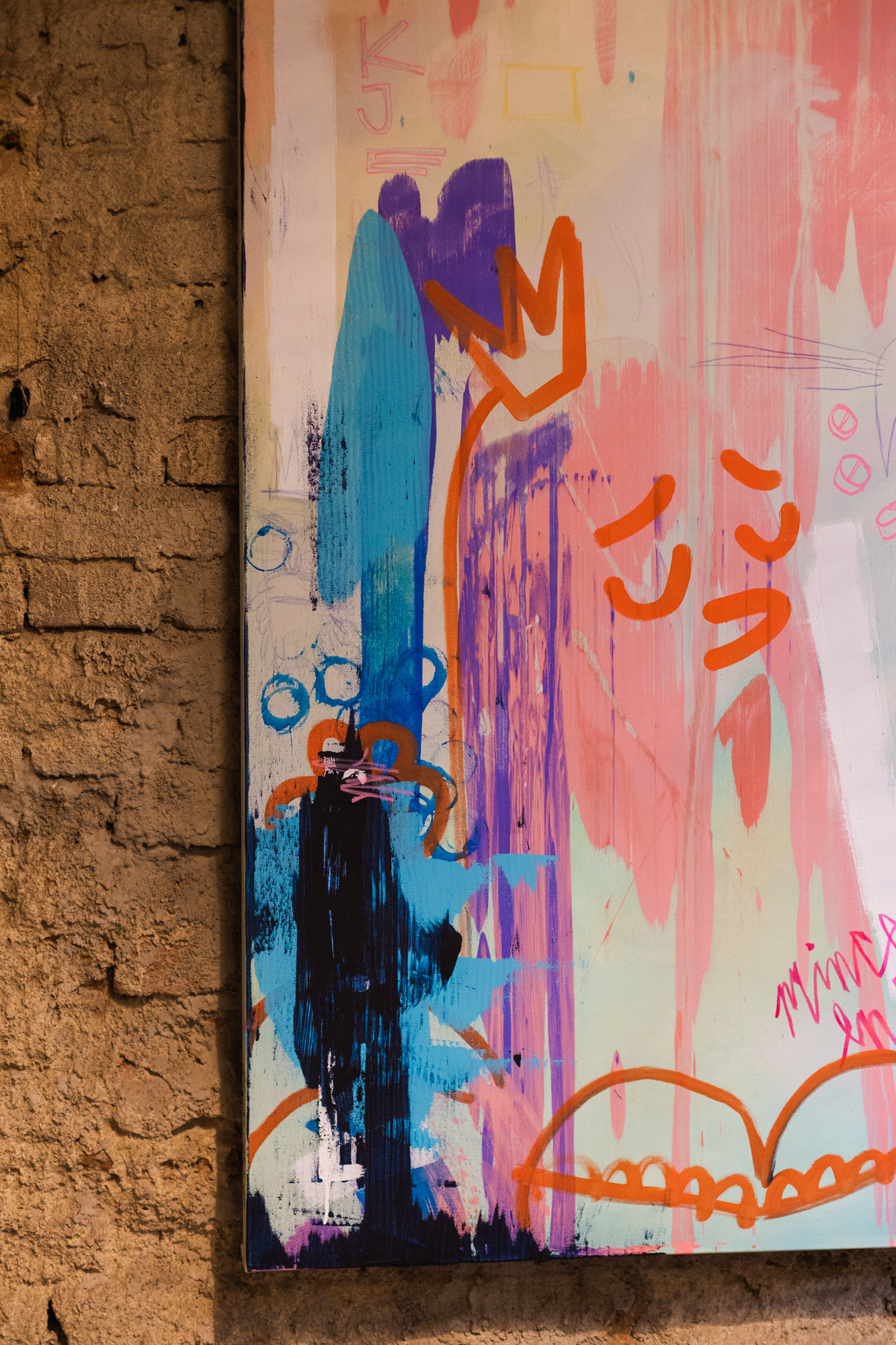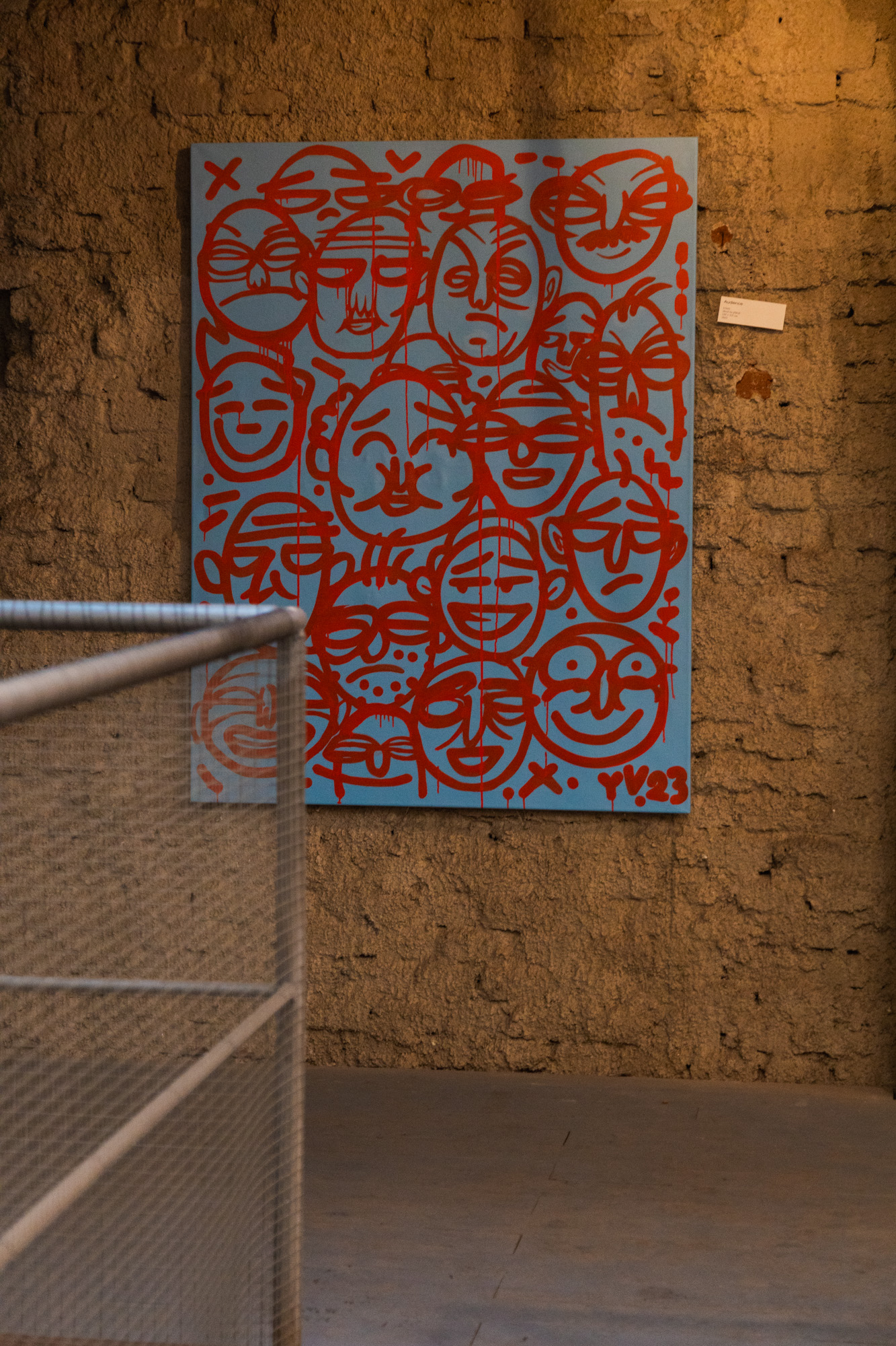 Přestože dvoupatrový prostor Schrott Gallery působí velkoryse, plátna jej zaplnila po celém obvodu. Horní patro patřilo převážně individuálním počinům, přízemí pak společným obrazům. Jejich rozmístění je podle umělců hlavně pocitové a často založené na barevném schématu. "Mohli jsme je seskupit třeba i tematicky, ale většinou se řídíme pocitem," přiblížil Ivan Svárovský.