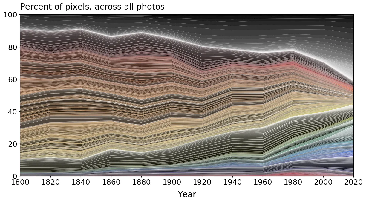 Z dat tedy vyplývá, že se barvy z každodennosti postupně vytrácejí. Přispěl k tomu i odklon od přírodních materiálů směrem k plastům. Studie však odkrývá i nuance – například mírný návrat saturovaných barev od 60. let až do současnosti.