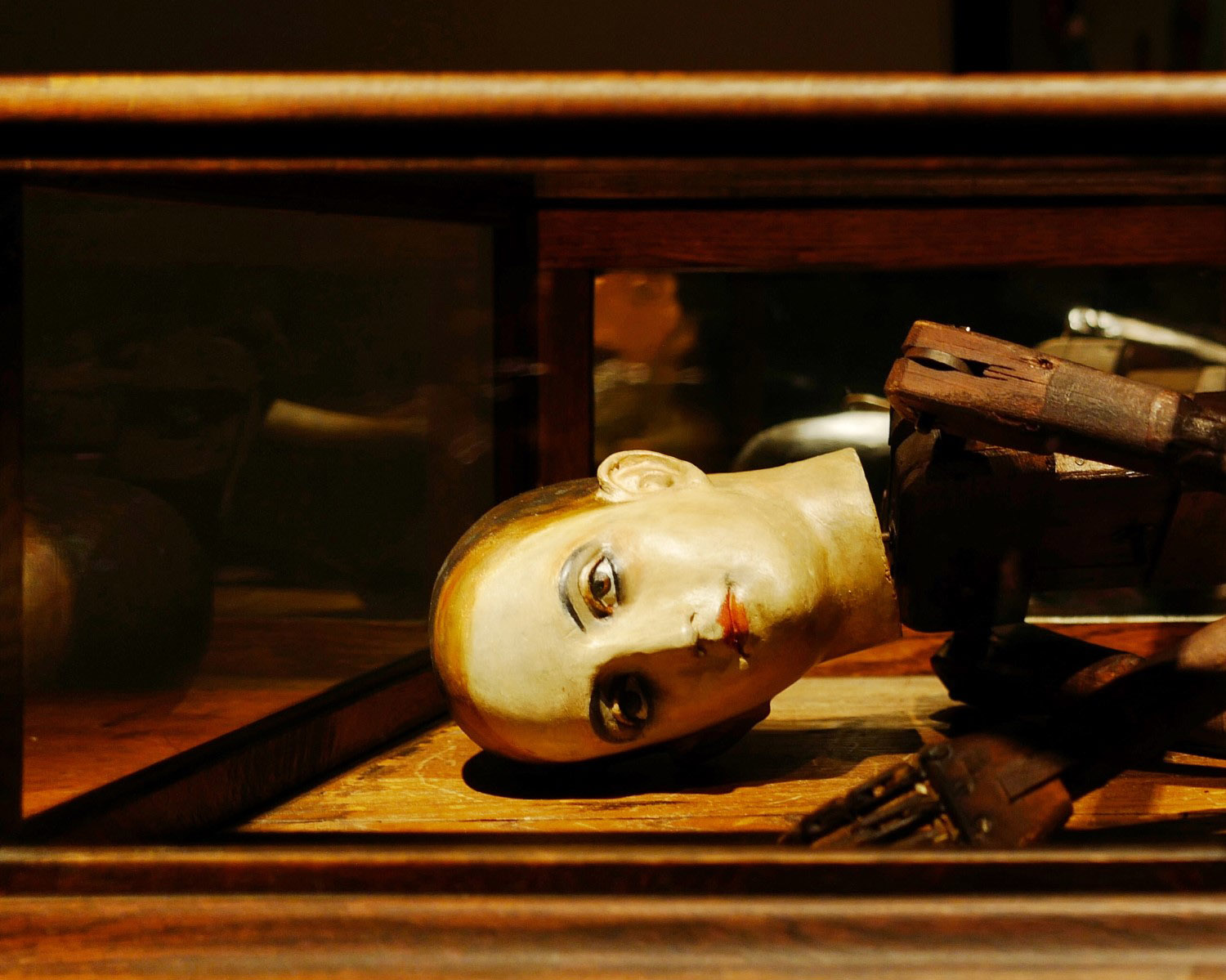 „From her wooden sleep“ je titul další prostorové instalace, aranžmá zhruba 150 historických dřevěných figurín v životní a dalších velikostechh. Instalace hutně vrství precizně rešeršované kulturně historické obsahy s autobiografickými odkazy.