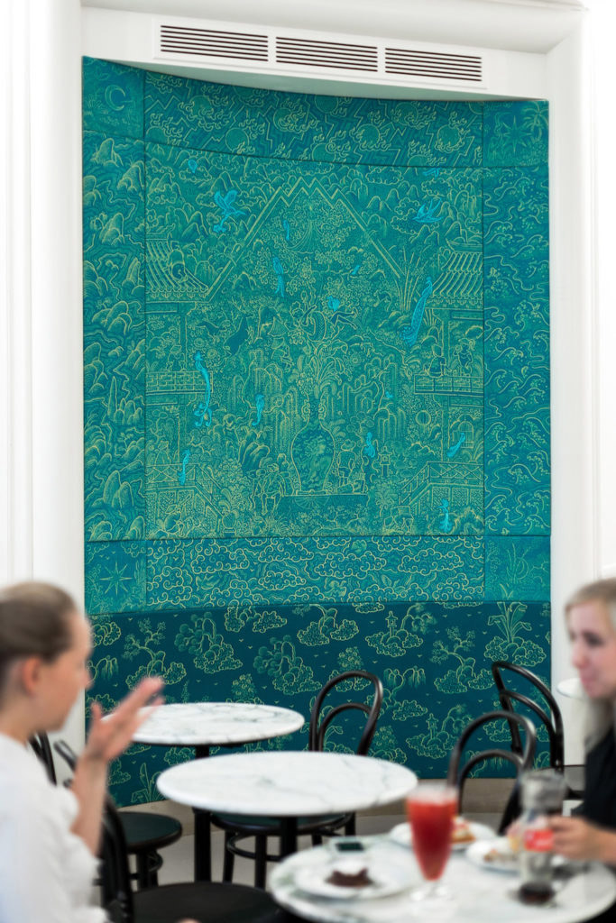 Povrchy stěn: Michal Bačák, tapeta pro Cukrárnu Myšák