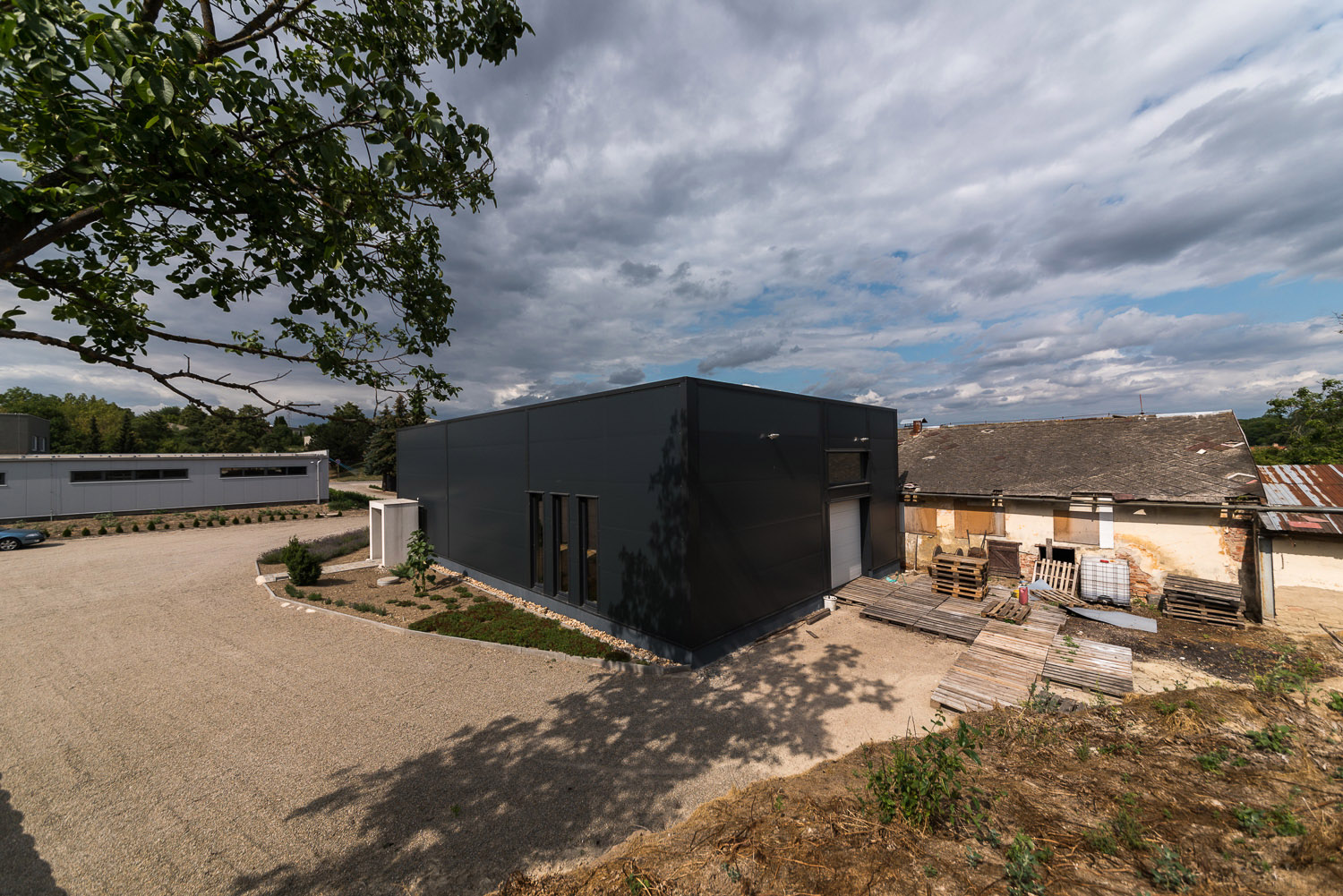 „Na fasádu jsme použili antracitový PUR panel,“ uvedl Caha. Je tedy patrné, že i s přiměřeným rozpočtem lze dosáhnout výsledku, který kultivuje okolí.