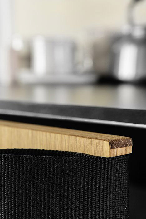 Studio BIG, které působí v Copenhagenu i New Yorku a vede je Bjarke Ingels, přidalo úchytky vyrobené z bezpečnostních autopásů. Kuchyně jsou dostupné v bílé barvě s dubuvým povrchem s kompozitovou pracovní deskou a umyvadlem, které může být také z nerezu.