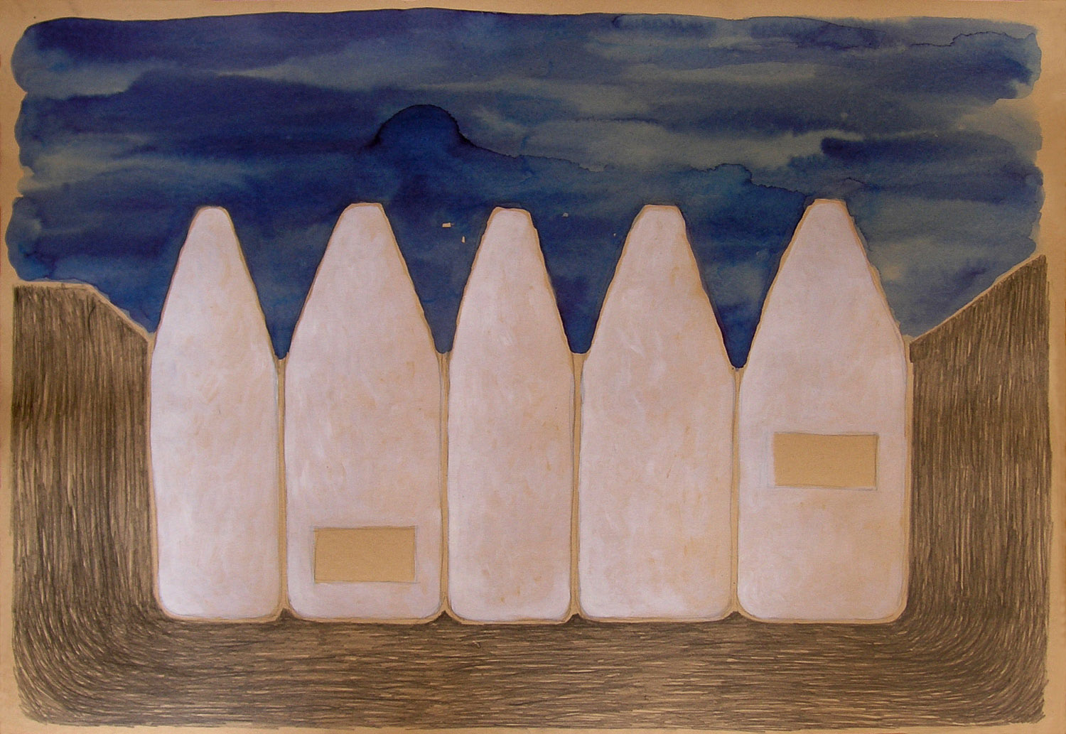 Je to zvláštní místo, které spojuje dva světy. Parcelace je zaznamenána již od středověku. Na druhé straně je olomoucká palácová a vojenská architektura. Napětí z různých velikostí vyvolává řadu otázek: Jakým měřítkem do tohoto prostoru vstoupit, zda zopakovat pět staveb, nebo přitupovat razantněji a navázat naopak na reprezentační stavby? Má koncepce se pokouší čerpat inspiraci z obou měřítek. Drobnější velikost se uplatňuje respektováním všech pěti parcel. Opakováním stejné výšky říms i střech u jednotlivých domů se řada sceluje a vytváří tak dojem jednoho areálu, který navazuje na přilehlý objekt Muzea umění, tedy na velké měřítko. Vznikl tedy jeden areál s jednou barevností, která by měla navázat na Muzeum umění.