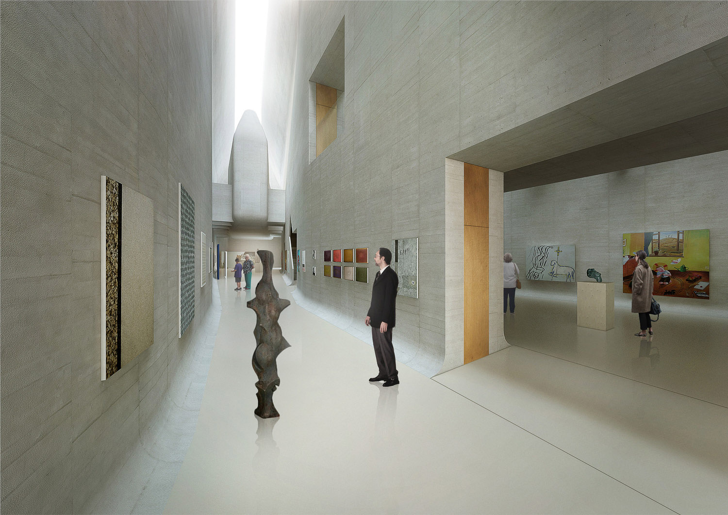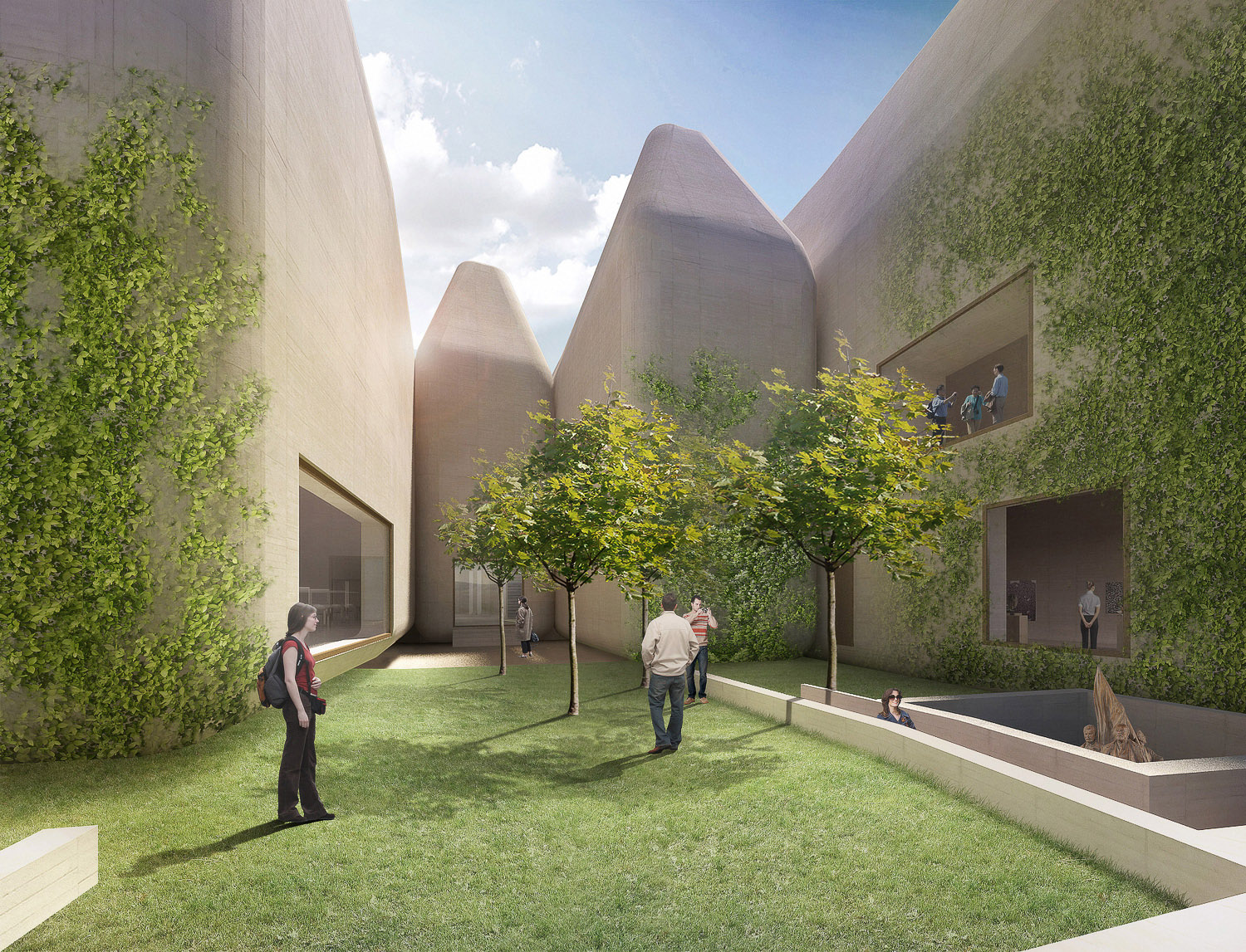 Půjde o pět sdružených staveb, které přesně kopírují původní parcely domů zbouraných v roce 1969. Rozdělení není formální, každý dům má jinou funkci. Ve vstupní dvoraně či fóru se bude odehrávat zahájení výstav, ale i další akce, které se běžně odehrávají na náměstí. Ve dvoraně jsou umístěny schody jako v divadle. Zde se tedy nachází fórum pod střechou a propojuje starou budovu a ostatní části. Další dům je věnovaný knihovně se studovnou, následuje knihkupectví s malým občerstvením. Navazující dvě lodi jsou výstavními prostorami se stálou expozicí. Patra jsou vyřešena vložením samostatných menších objektů. Hlavním motivem je horní osvětlení, které se do objektů dostává seříznutím vrchlíku valbové střechy. Menší vložený objekt bude světlo obtékat a zároveň do něj proudit.