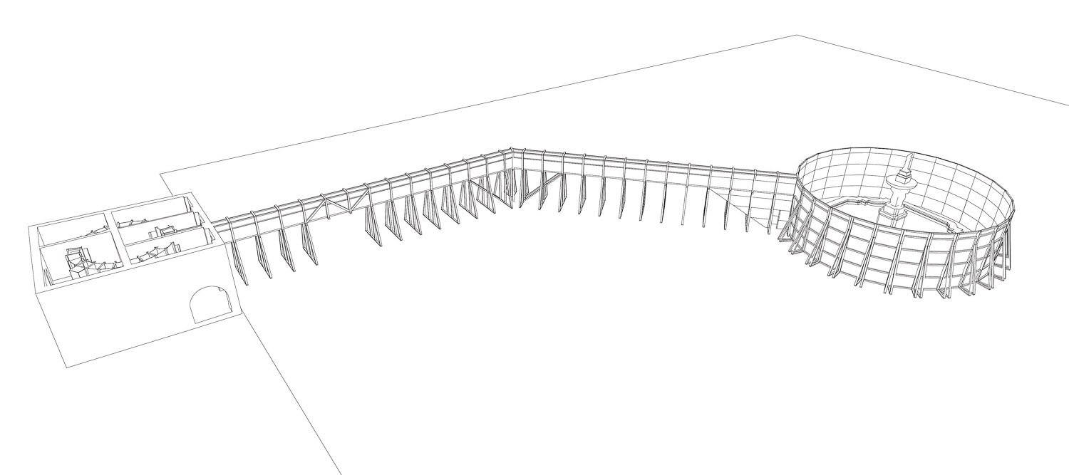 Myšlenka se zrodila hned první den, když jsem přijel do Českých Budějovic, a nemohl jsem na náměstí nalézt Dům umění. Další myšlenky se také začaly utvářet při vnímání velkorysého prostoru náměstí, kdy lidé chodili kolem krásné kašny bez povšimnutí, vnímali jí tedy jen stereotypně, což je škoda. Proto jsem se rozhodl, že by bylo zajímavé postavit kašnu do role exponátu, a proto jsem pro ni vytvořil samostatný prostor. Lidé se k ní dostali jen po lávce z Domu umění a mohli si tak vychutnat prostor náměstí z výšky a poté si užít kašnu v intimnější atmosféře. Vlivem tohoto projektu se rozproudila diskuze, konaly se debatní večery. Celá akce tedy měla obecnější přesah do témat veřejného prostoru nebo vstupu architektury do historického centra. Chodila mi také spousta mailů, protože lidé nevěděli, o co jde. Ale když si prošli koridorem, byli s kašnou sami a asi poprvé slyšeli zurčet vodu, řada z nich to pochopila.
