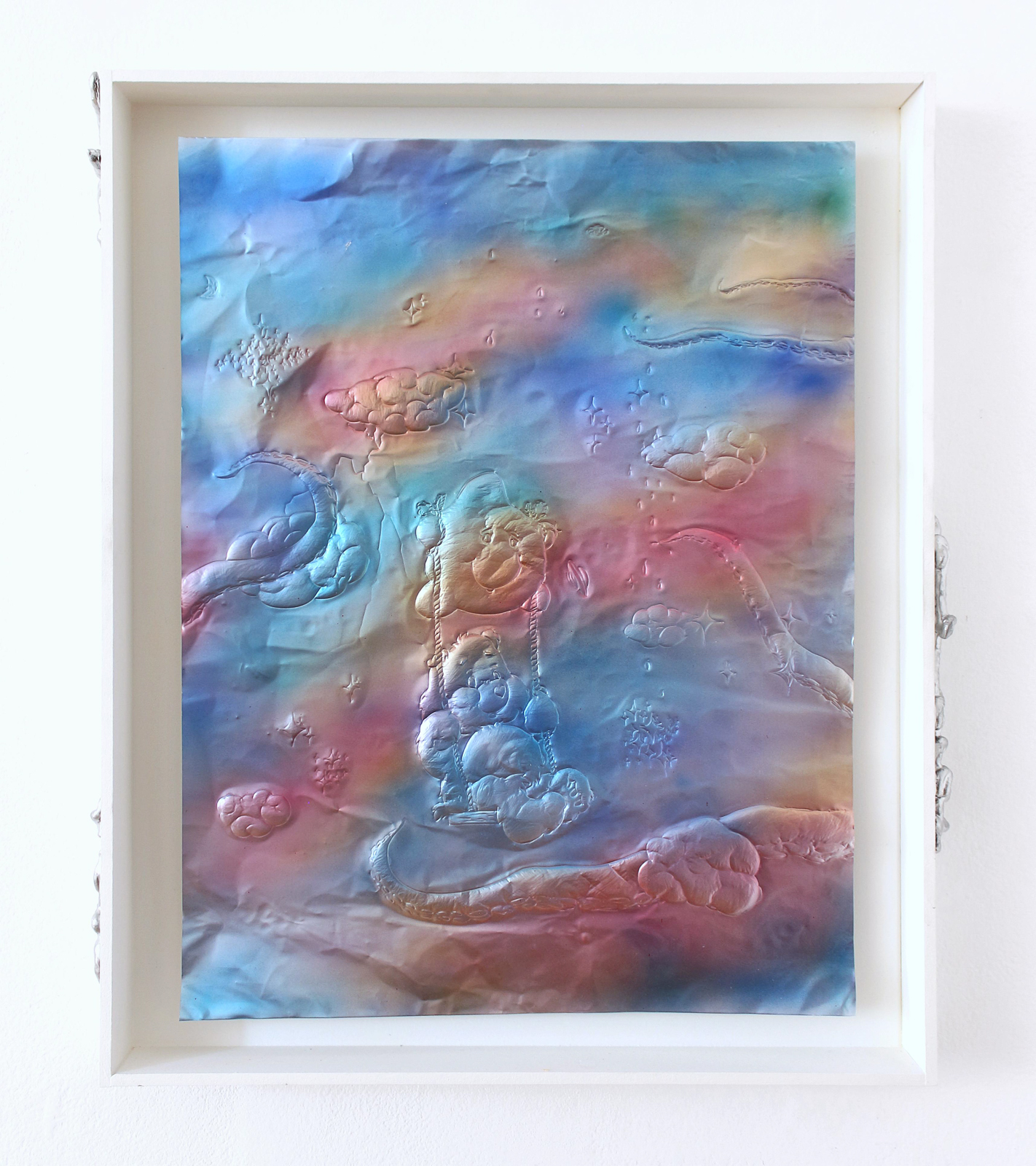 Ve vašich duhových dílech figurují medvídci z osmdesátkového seriálu Care Bears, na druhou stranu, pokud se podívám na názvy vašich uplynulých výstav vidím tam témata jako ztráta, oběť a podobně. Jakým způsobem to spolu souvisí?