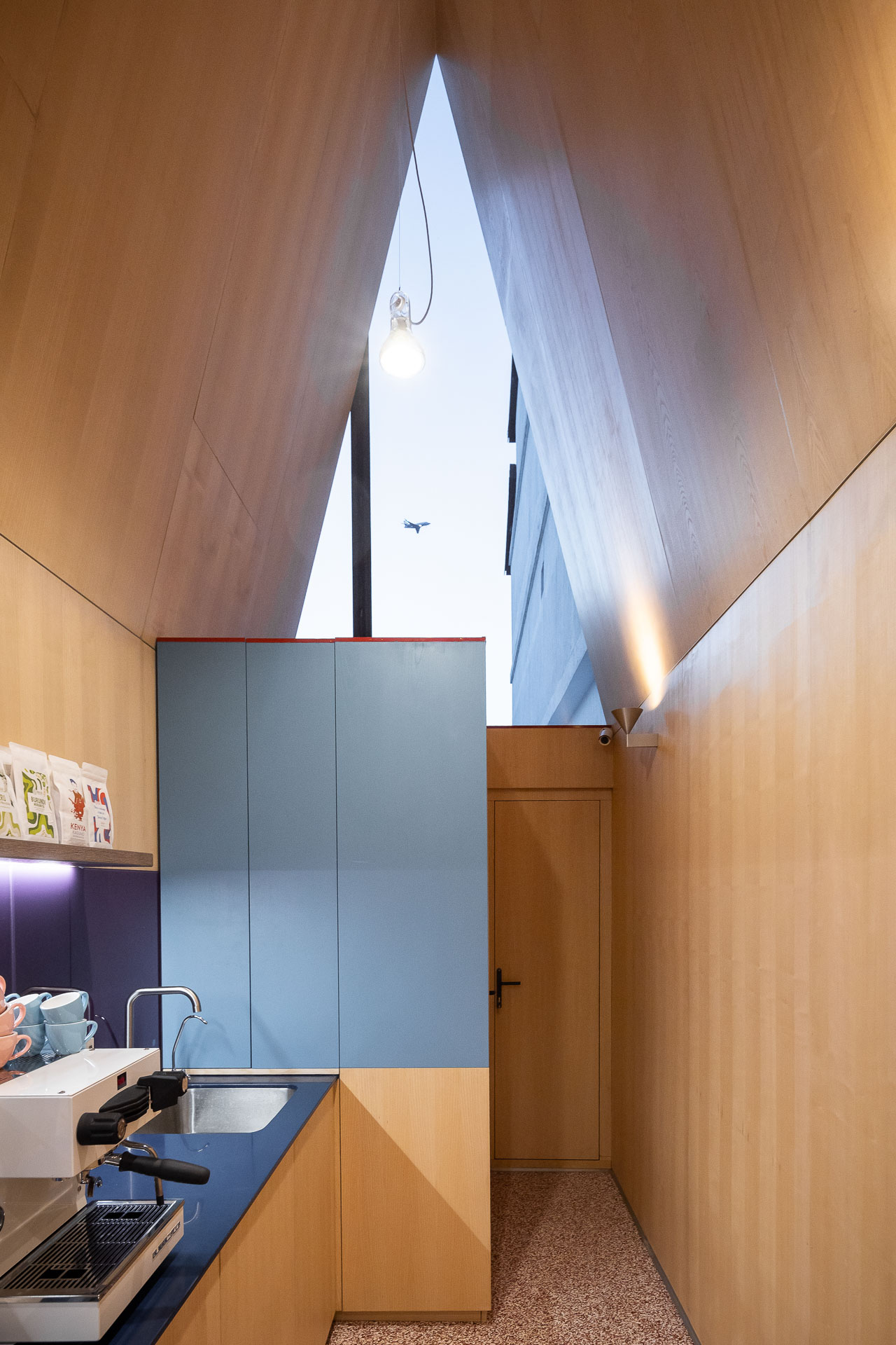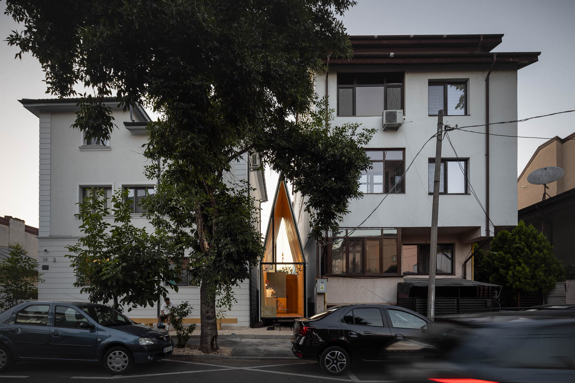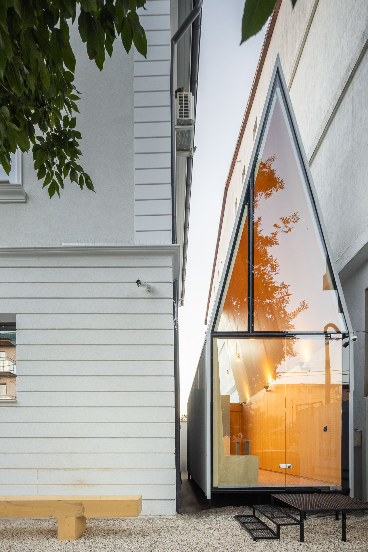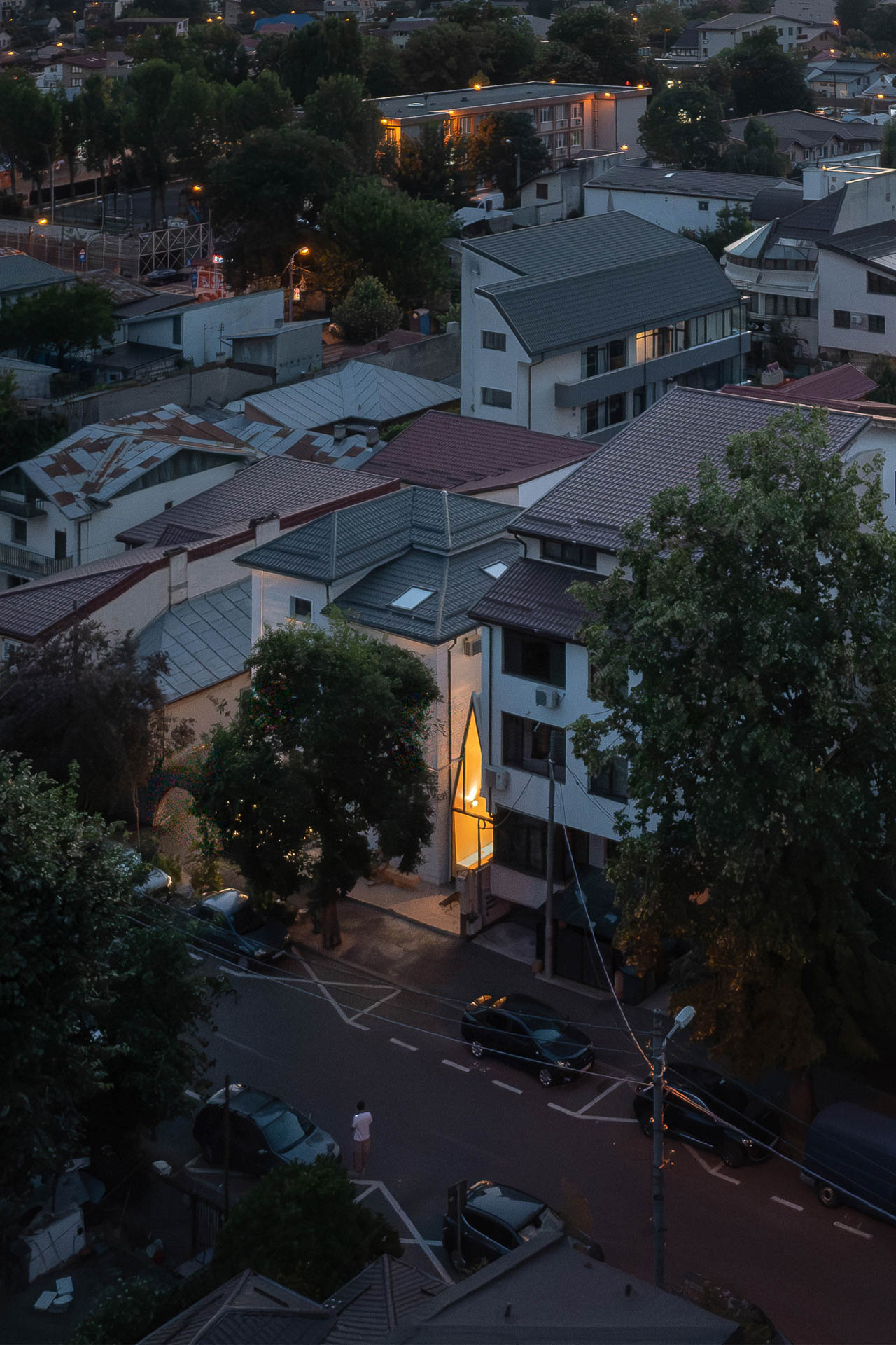 BUKUREŠŤ — První distrikt na severozápadě Bukurešti není úplně místo, kde by se potulovali turisté. Výjimku tvoří část kolem historického Bazilescova parku s amfiteátrem z poválečného období, takže si tu chtěl otevřít pobočku místní kavárenský řetězec. Všechny své dosavadní provozy měli v již existujících prostorách, tentokrát se pustili do stavby nové kavárny. Důvtipně jim ji navrhl Stefan Pavaluta z bukurešťského studia Vinklu.