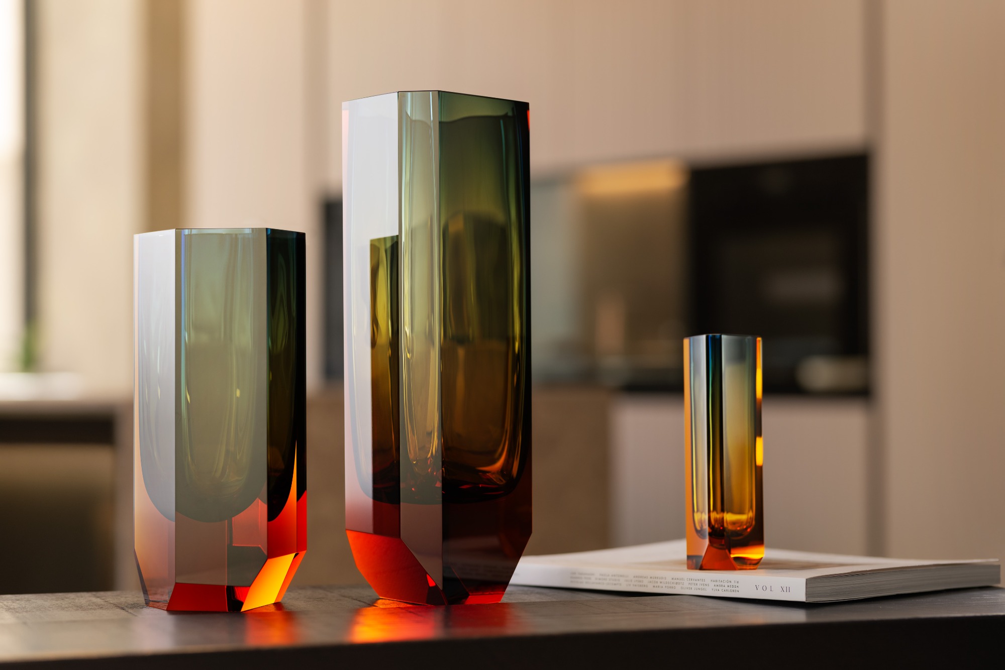 Vázy Magnus jsou dostupné ve třech rozměrech. O působení Jana Plecháče ve sklárně Moser si můžete přečíst také v našem rozhovoru, jeho dosavadní designérskou práci shrnuje výstava Vzhůru v Moravské galerii, která bude v Uměleckoprůmyslovém muzeu až do ledna příštího roku.