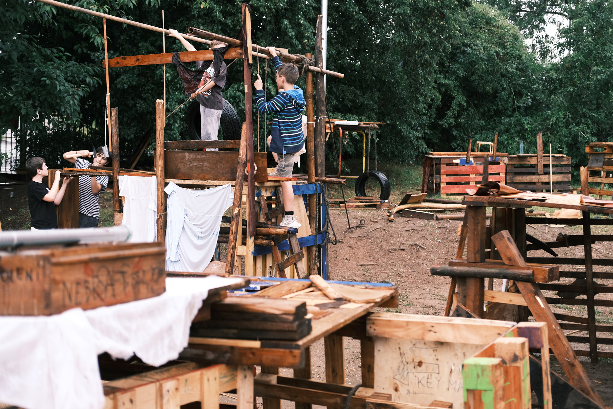 Příklady jednotlivých městských částí spolupracujících s Domy dětí a mládeže a občanskými spolky ukazují, jak na řadě míst díky synergii vzniká nový veřejný prostor pro tvořivou hru a rozvoj fantazie. Děti si na dobrodružných hřištích mohou svobodně hrát, stavět bunkry nebo domečky. Oblíbená je práce s opravdovými nástroji jako jsou pily, kladiva nebo vrtačky. K dispozici jsou hřebíky, vruty nebo různé materiály jako je dřevo, látky či lana. Děti je používají za přítomnosti playworkerů – zaškolených lektorů a lektorek.