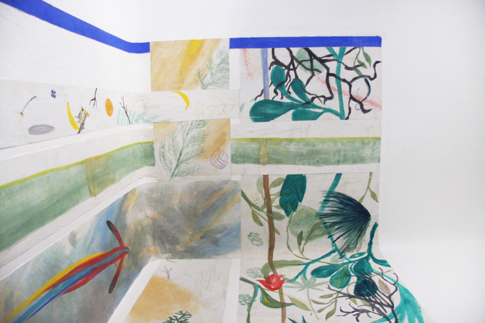 Markéta: Často se může stát, že si něco naplánujeme, na zdi zpracujeme první část plánu a vidíme, že to ty ostatní části už nesnese, nechce. Nebo naopak si naplánujeme něco hodně jednoduchého a najednou vidíme, že je potřeba obraz nějakým způsobem prostorově doplnit, aby to víc fungovalo. Kompozičně nebo světelně nebo zkrátka pocitově.