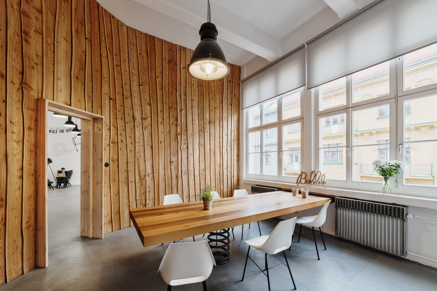 Ilustrační fotografie: titulní snímek kancelář Innogy; kancelář Bubble, zdroj: CBRE Zasedačka roku