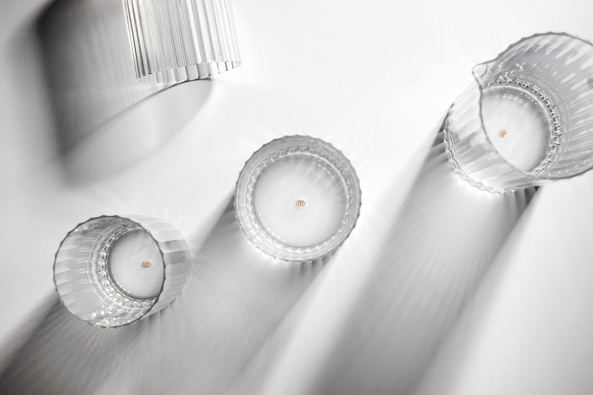 Taktéž nově představený nápojový set 1913 je redesign historické kolekce Moseru. Jeho vizuál hezky komunikuje i se zmíněnými vázami Harmonic. Sklenice a karafa vychází z klasické nadčasové kolekce a je stejně jako Harmonic vyroben pomocí kuličské techniky. „Vytáhli jsme jej z archivu, pohráli si s proporcí a designem tak, abychom jej posunuli do dalšího tisíciletí. Kolekce boří hranice mezi těžkými sklenicemi na tvrdý alkohol a odlehčenou variantou na tzv. soft drinks,“ popsal Plecháč.