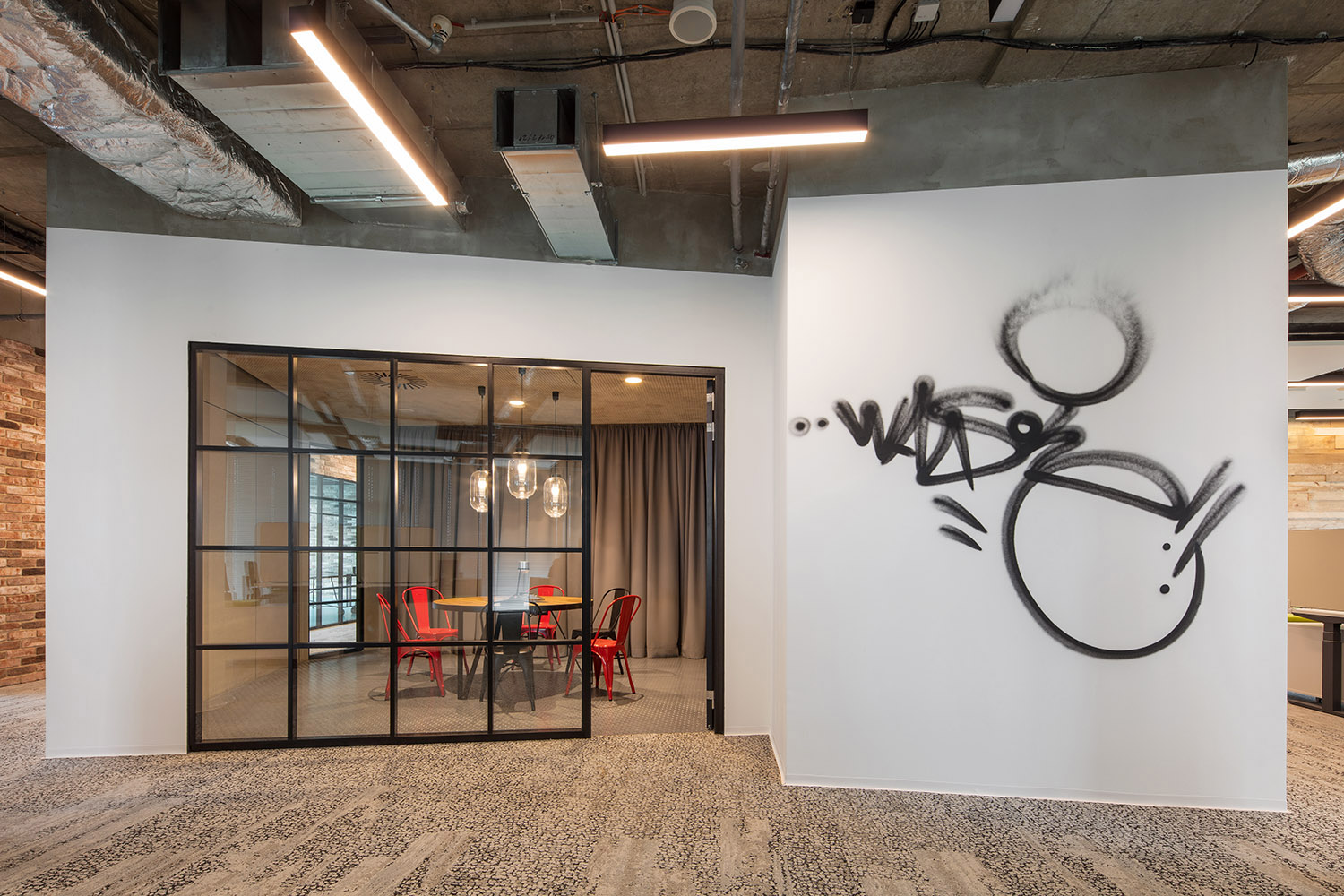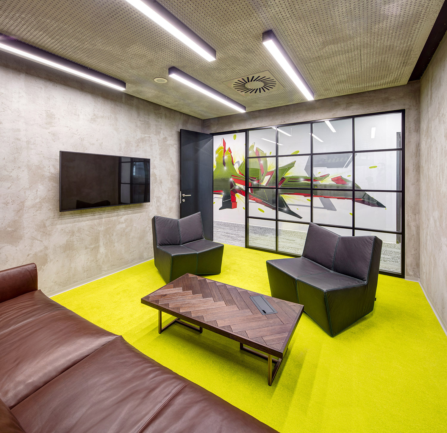 „Kombinací originálních kusů industriálního retro nábytku a soudobých designových prvků vnášíme do interiéru záměrně mírně provokativní atmosféru s cílem narušit obvyklou strnulost korporátních kanceláří,“ uzavřel architekt.
