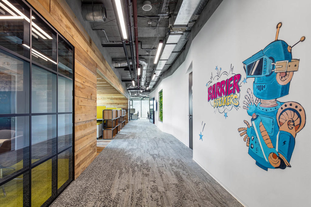 Návrh interiéru kanceláří přední globální IT firmy, CA Technologies, proto svým industriálním designem odkazuje na tovární budovy první průmyslové revoluce, ve kterých probíhala první masová produkce zboží. Zároveň jde o reminiscenci na „garážové“ začátky firem, které jsou dnes hlavními hybateli digitálního světa.