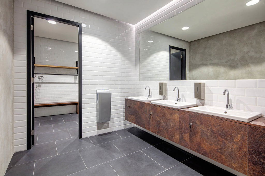 Je výrazně tvarována a ponechána v bílé barvě, která slouží jako podklad pro sprejované grafiky. Jednotlivé materiály jsou vybrány pro svou osobitost, výraznou strukturu a industriální symboliku.