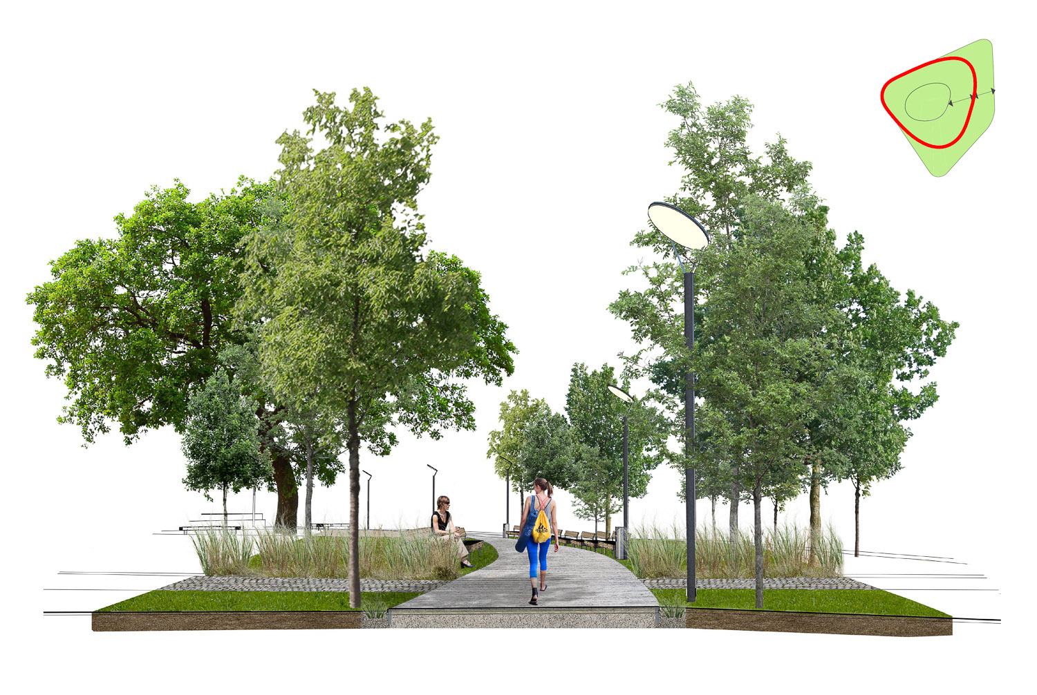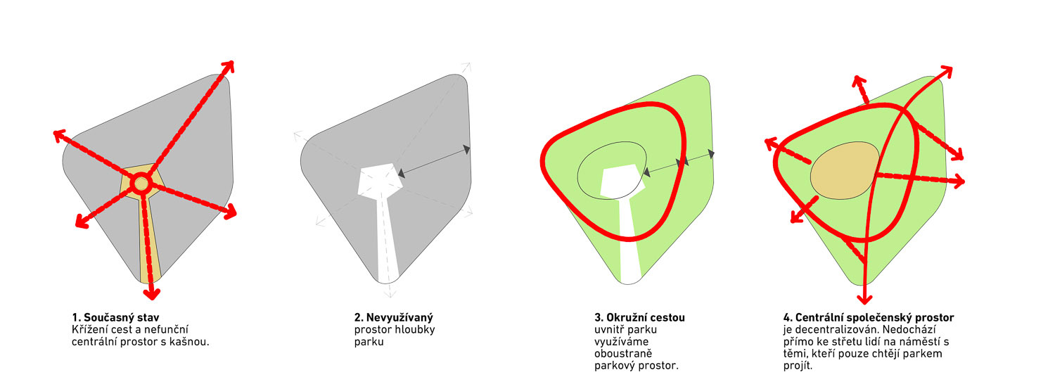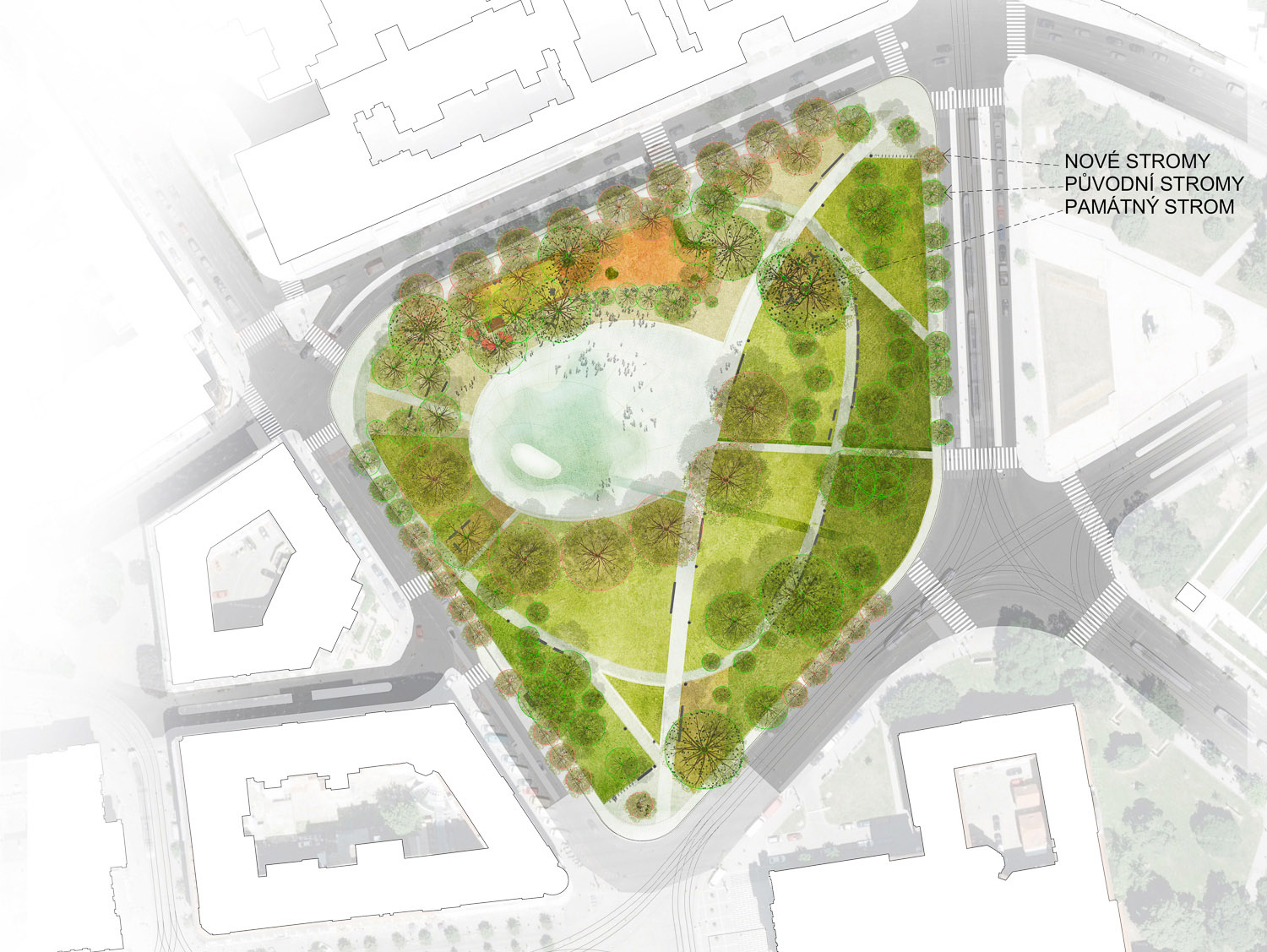 Novou dominantou parku se stane multifunkční plocha, autory nazývaná Urban Park Square. „Oválná plocha v centrální části parku by měla sloužit všem možným aktivitám ve všech ročních obdobích. V létě zde mohou děti dovádět mezi vodotrysky, lze tu pořádat výstavy nebo divadelní představení, v noci zde mohou být filmové projekce, koncerty, sportovní přenosy. V zimě počítáme s tradičními adventními trhy, kluzištěm, zkrátka cokoliv bude potřeba,“ přiblížil všestranné využití autor návrhu Martin Sládek.