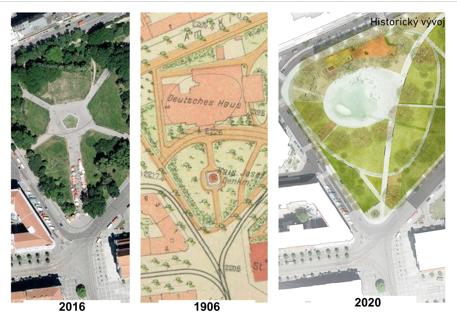 Podoba parku, který osvěžuje Moravské náměstí v Brně jako by odrážela neutěšenou minulost místa. Vítězný návrh consequence forma do parku, ve kterém stával Německý dům, přinese kavárnu, restauraci, dětské hřiště a multifunkční plochu.