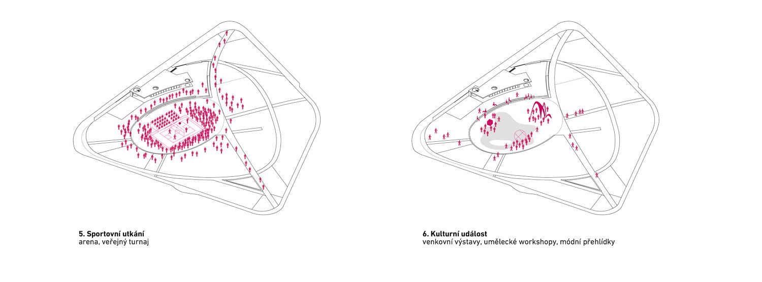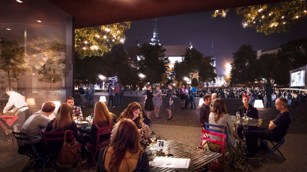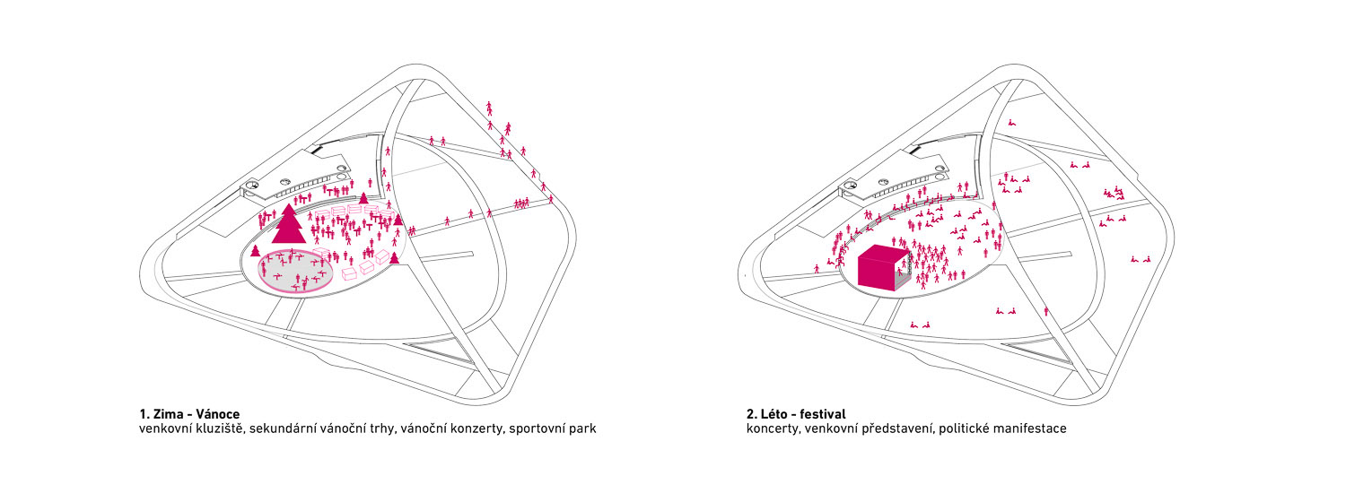 „Těsně k centrální ploše bude přimknuta zadní terasa s kavárnou a restaurací, která nabídne jedinečný výhled na celý park, Kostel Sv. Tomáše a další brněnské kostelní věže. V těchto místech vznikne i dětské hřiště s průlezkami,“ doplnila autorka návrhu Janica Šipulová za celý tým, jehož dalšími členy byly Petra Buganská a Barbora Kudelová ve spolupráci s Václavem Navrátilem. Vizualizace projektu vytvořilo studio Moare ve složení Tomáš Mokrý a Štěpán Mosler.