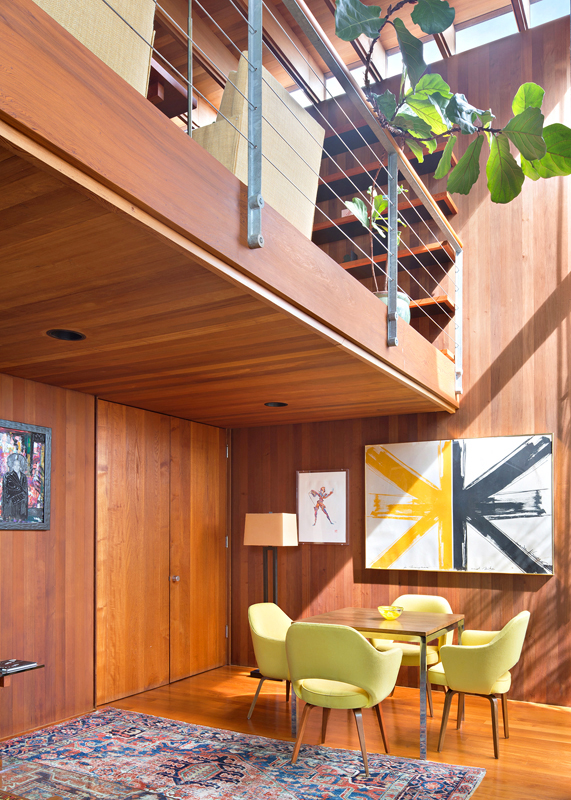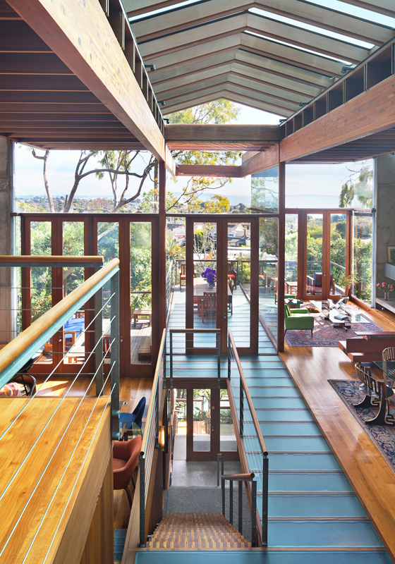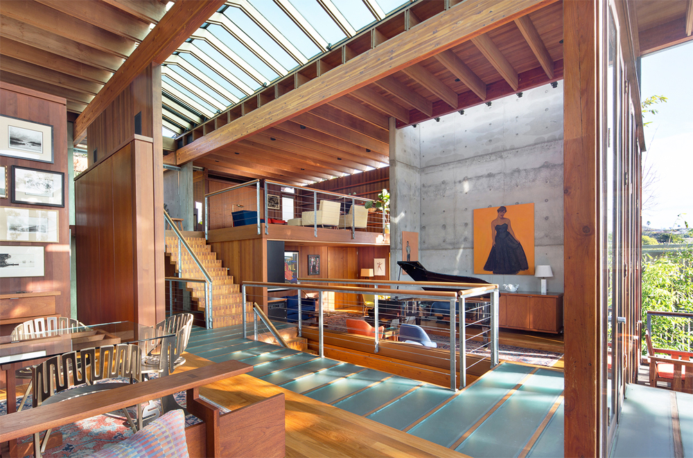 Kalifornská rezidence pro jednu rodinu vznikla za čtyři roky, její dveře se poprvé otevřely roku 1991. Uvnitř se objevuje sekvojové, teakové a jedlové dřevo, beton a sklo, které kromě zmíněných podlah a střechy zasahuje také do některých stěn.