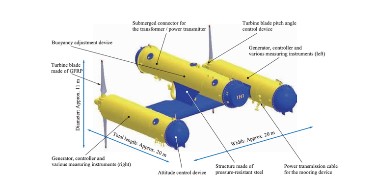 Ishikawajima-Harima Heavy Industries (IHI Corporation) ve spolupráci s New Energy and Industrial Technology Development Organization (NEDO) v únoru úspěšně završili tři a půl roku dlouhý zkušební provoz turbínového systému Kairyu a chystají se jej spustit naostro. 330 tunový prototyp o rozměrech necelých 20 metrů na délku a šířku se bude vznášet v hloubce zhruba 50 m pod hladinou u východního pobřeží. Při proudění vody rychlostí tří uzlů dokáže generovat 100 kW, které poputují kabelem do pevninské rozvodné sítě.