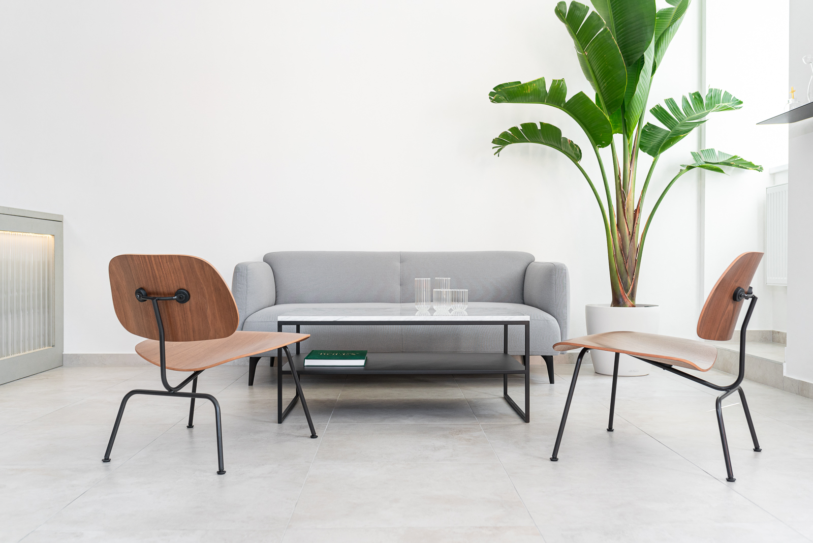 Minimalistický ráz showroomu dotváří interiérové vybavení v podobě ikonických designů, které spojuje důraz na detail. Za všechny jmenujme třeba ploché na zdi připevněné reproduktory dánské značky Bang & Olufsen. „Reproduktory mě zaujaly tím, že v interiéru nikde zbytečně neruší a zároveň jsou neskutečně variabilní. Volíte si počet šestihranů, ze kterých tvar poskládáte a můžete si také vybrat z velkého množství barev potahů. Já jsem z nich nadšený,” říká s úsměvem.