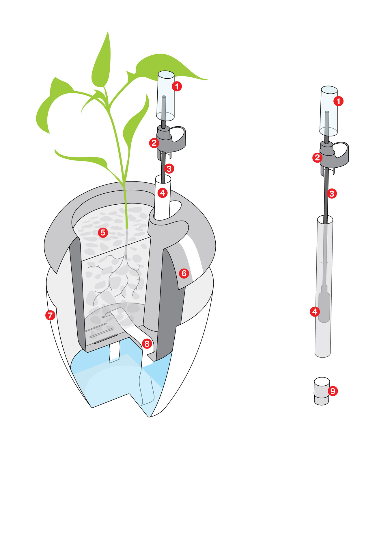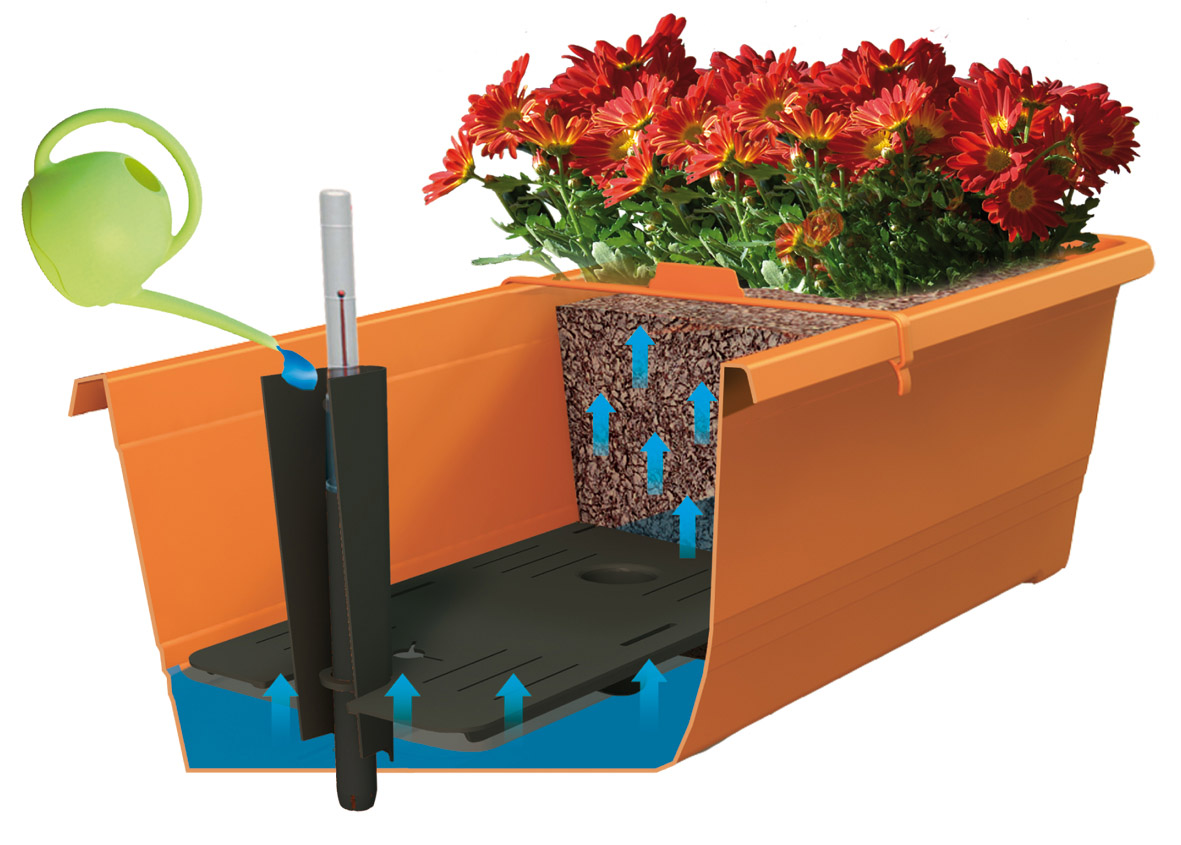 Kvalitní samozavlažovací květináče a truhlíky jsou opatřeny měrkou, díky níž je patrné, kolik vody je ve spodní nádobě. Nádoby samozavlažovacího systému na sebe nasedají tak, aby mezi nimi byla vzduchová mezera, která zajišťuje přísun vzduchu do substrátu a do oblasti kořenů. U venkovních samozavlažovacích květináčů kupujte jen ty s odtokovým otvorem. Ten musí být umístěn tak, aby vodní hladina nedosáhla až k substrátu. Zvlášť pokud jsou květiny schované pod střechou a prší do nich, je nutné, aby přebytečná voda mohla volně odtékat ven.