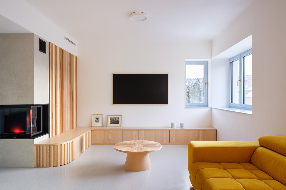 Díky rekonstrukci dům navíc získal mnoho moderních kvalit, které kloubí s kouzlem zachovalé vily. „Podstatou je chytrá domácnost s programovatelnými světly, čidly přítomnosti, elektromotorickými zámky, volitelnými režimy atd., vše dálkově řiditelné a kontrolovatelné. Tak vypadá opravdová modernizace modernismu,” uzavírají architekti z No Architects. Vila disponuje třemi interiéry – dvěma byty a společnou částí.