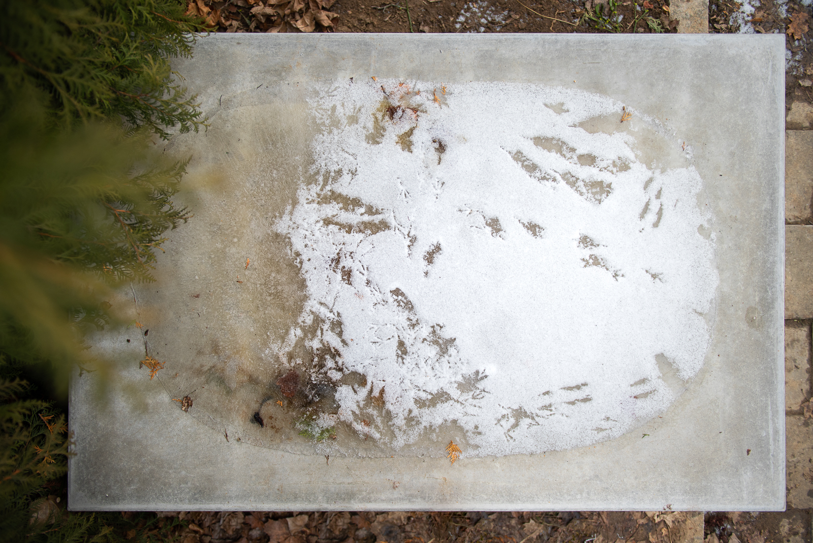 BRNO – Minulý týden jsem se byla na hrob podívat. V prohlubni zezhora náhrobku je teď v zimě led, v něm kousky větví, listy, stopy ptáků. Zamrzlá hladina vytváří zajímavý obraz. Tak nějak jste si to představoval?