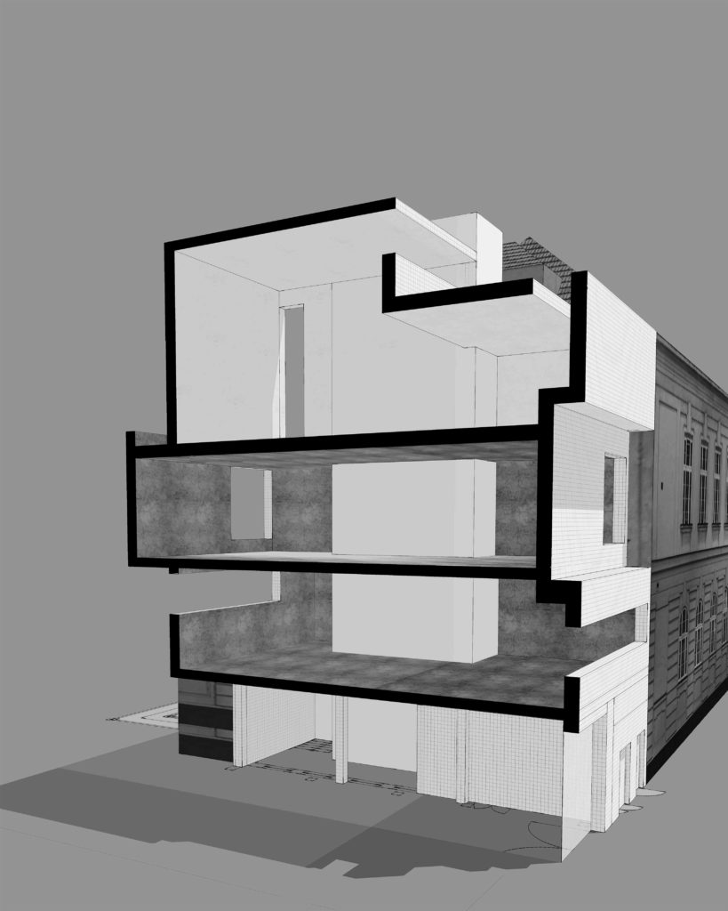 BRNO - Bílé hrany, geometrie, boxy naskládané na sebe. Katedra výtvarné výchovy v areálu pedagogické fakulty na Poříčí získala díky dostavbě z Dílny Michala Palaščaka nové výukové prostory i ateliéry. Budova tvořená bílými kvádry zakončuje blok domů starší zástavby v Ypsilantiho ulici. Funkční a zároveň velmi přímočarý prostor poskytuje zázemí ateliéru nových médií, ateliéru malby a dílně pro objektovou tvorbu.