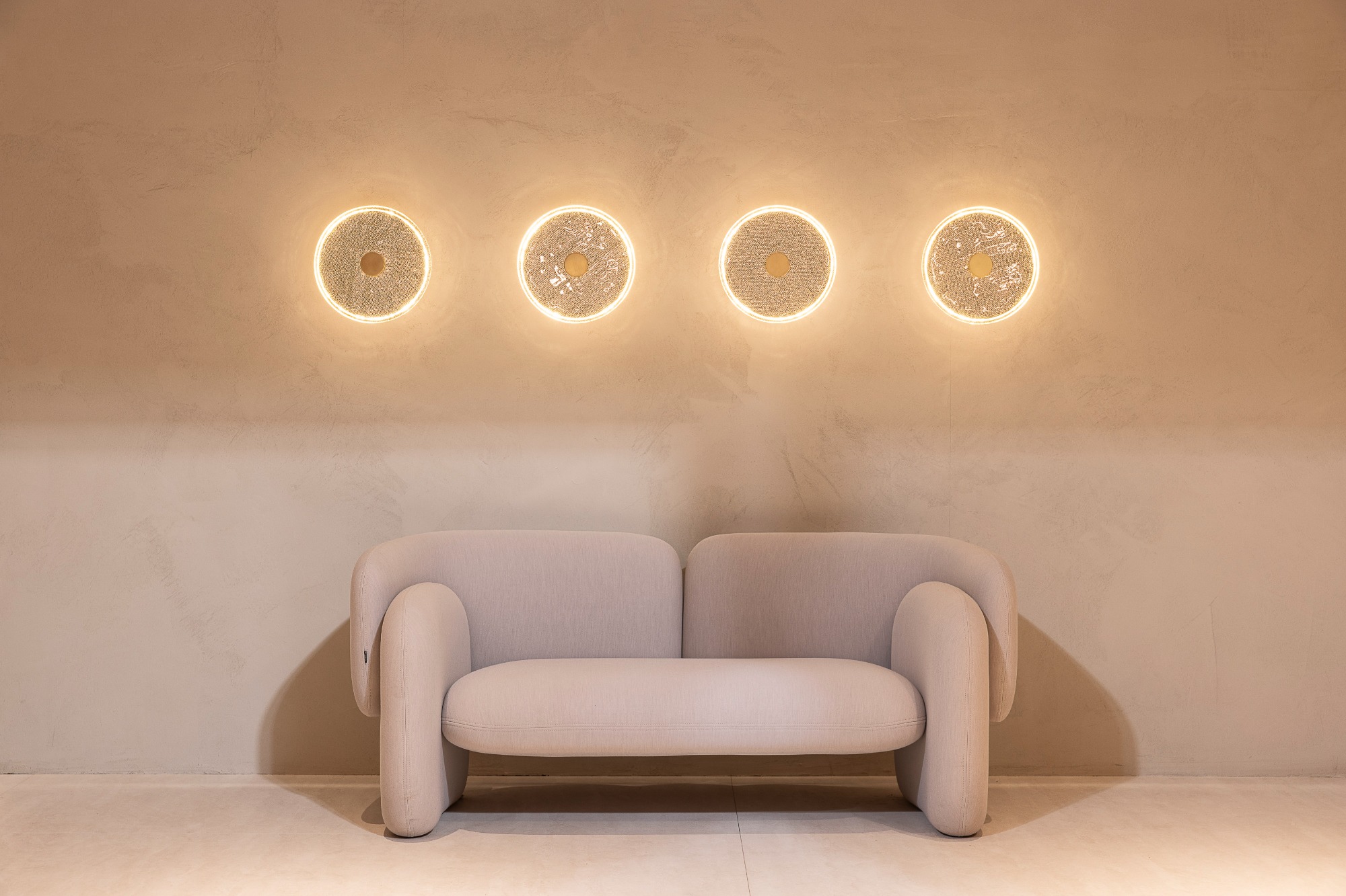 Jedna z novinek představených vznikla pod rukama kreativního ředitele Lasvitu Maxima Velčovského. Nástěnná svítidla Loomo navazují na tradici textilního řemesla a strukturu tkanin. Kruhový tvar spolu se zlatavým odstínem vytváří ambientní světlo a zároveň podtrhují detail tkané struktury.