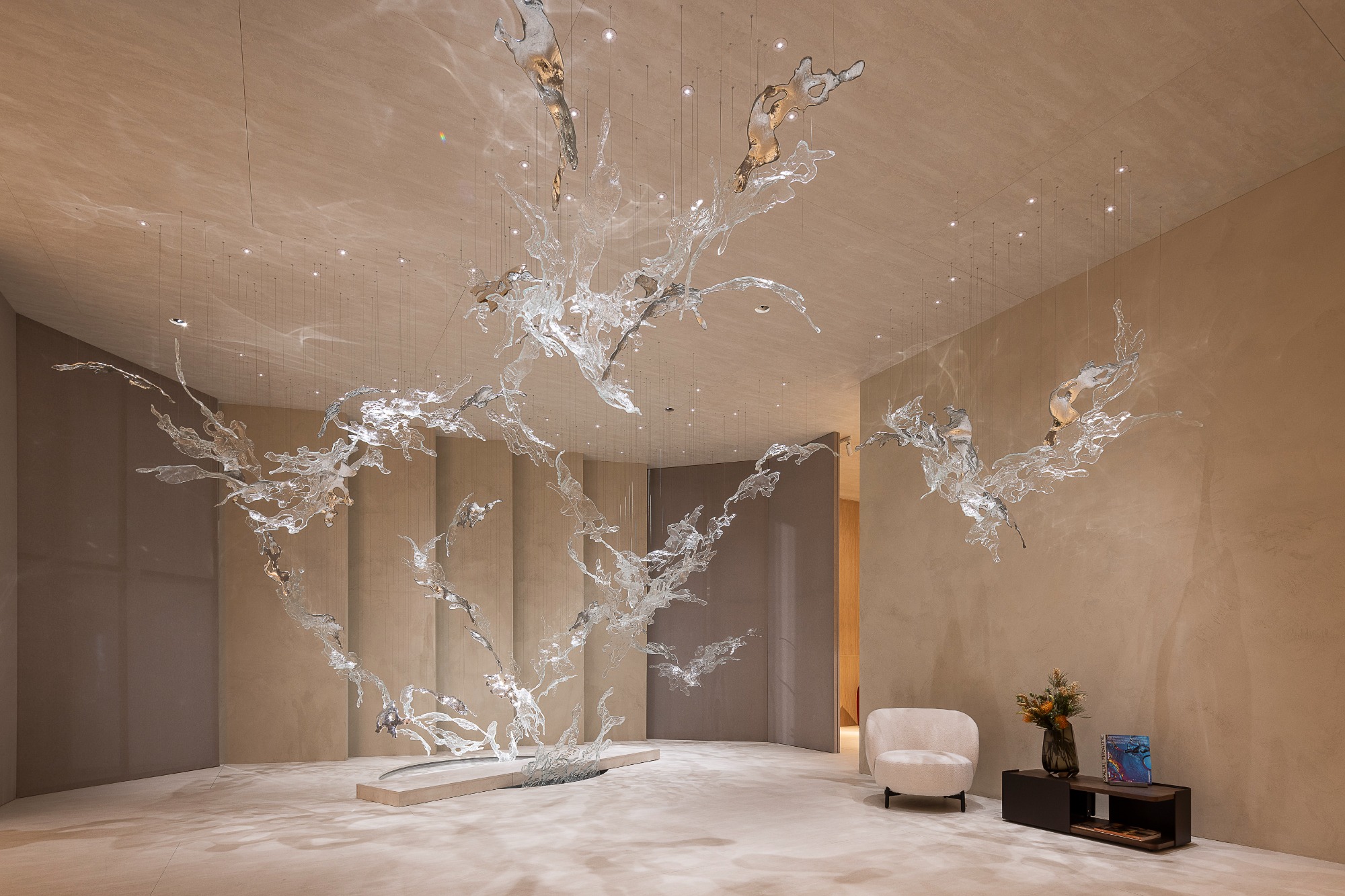 Proměnlivou energii vody a její různé polohy i formy znázornilo těžiště celé výstavy – instalace Splash od Martina Galla. Působivá světelná instalace zanechá hned několik výrazých pocitů snad v každém. Díly skla zkapalňující také hranice mezi designem a uměním pojí tavené sklo a kaustické efekty, kdy se paprsky světla mění v závislosti na indexu jeho lomu. Rozmanité zmrazení vody v pohybu ilustruje široké spektrum vodních fenoménů a jejich povahy – od klidné hladiny, přes děti skákající v kalužích po živelnou divokou řeku. „Chtěl jsem zachytit, jak se jediná kapka může vzedmout v něco obrovského, jak světlo tančí na hladině a jak voda, stejně jako sklo, v sobě skrývá klid i energii,” popsal autor.