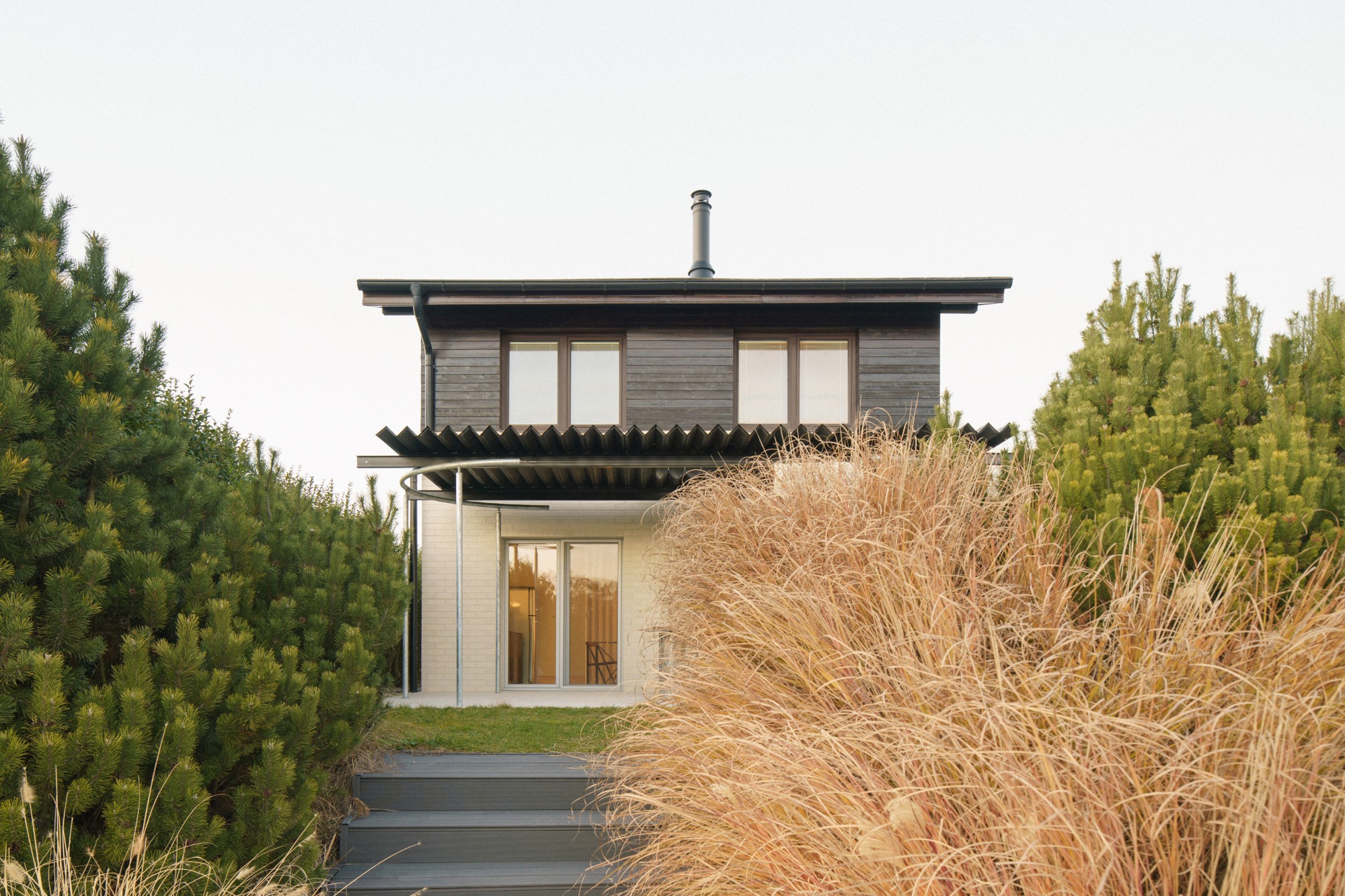 Domek o výměře kolem 40 m² je součástí uskupení asi padesátky typizovaných domků u jezera, díky jihovýchodní orientaci je ale ve výhledu neuvidíte. „Chatka se nachází na cípu uměle vytvořeného zálivu na jezeře s krásným výhledem na vodu a les okolo. Z terasy není vidět žádnou jinou chatku, jen čistou přírodu. Na tom jsme se snažili stavět náš koncept,“ uvedl Alan Prekop.