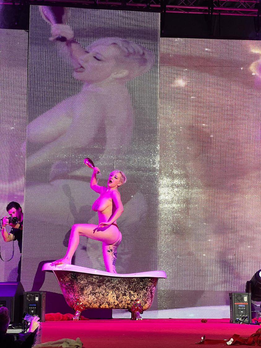 Kdysi se na burlesce vystupovalo topless, pasties přišly až později. Každopádně burleska se dělá pro female gaze (ženský pohled, pozn. red.). Samozřejmě se taky pracuje s nahotou, ale v burlesce se ukazuje, že nahota nemusí být vždy sexuální. Komediální vystoupení není sexy. Burleska ukazuje, že různá těla mohou být zajímavá i sexy a že někdo může být sexy, aniž by byla sexuální objekt. Většina žen v publiku je hetero, takže to neberou jako sexuální objekt, nebo někoho, koho chtějí sbalit do postele, a přesto pak za mnou chodí a vidí v tom sexyness. Nahé ženské tělo nemusí být sexuální objekt pro potěšení muže a já dělám burlesku hlavně pro ženy.